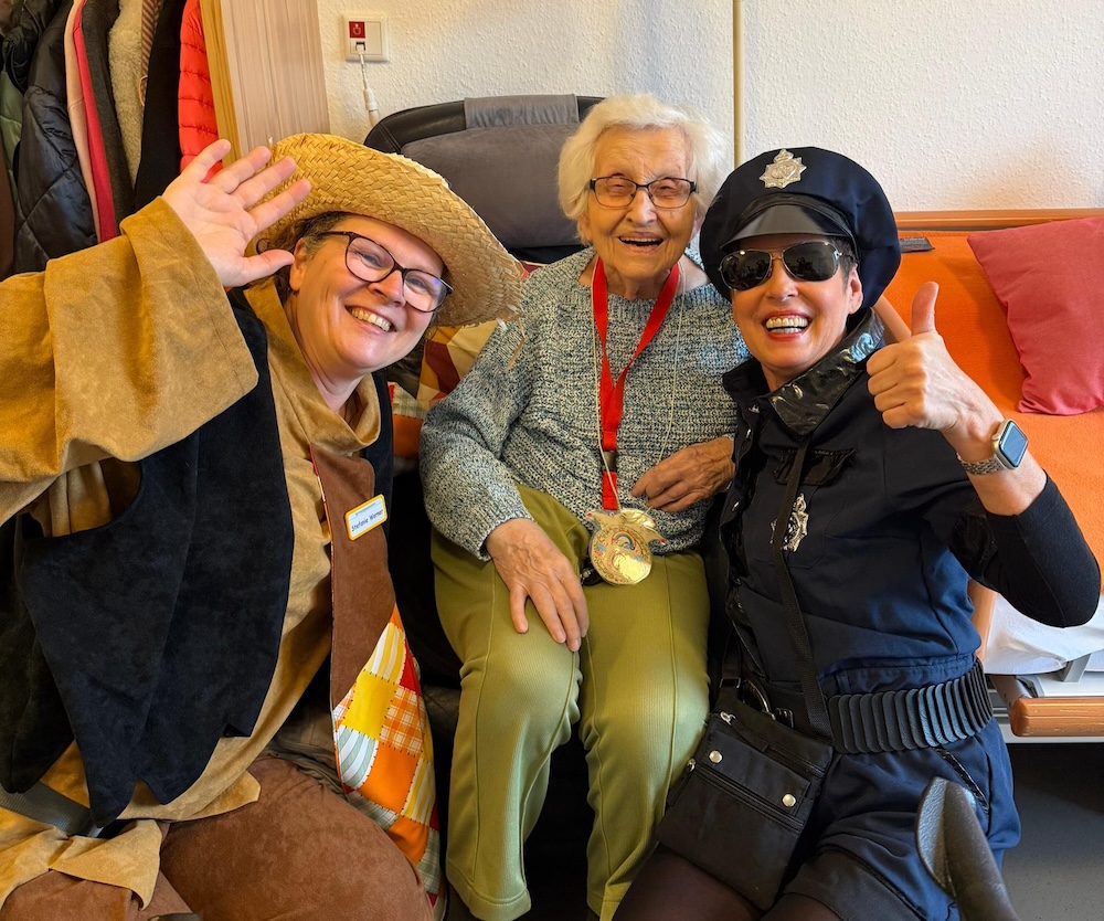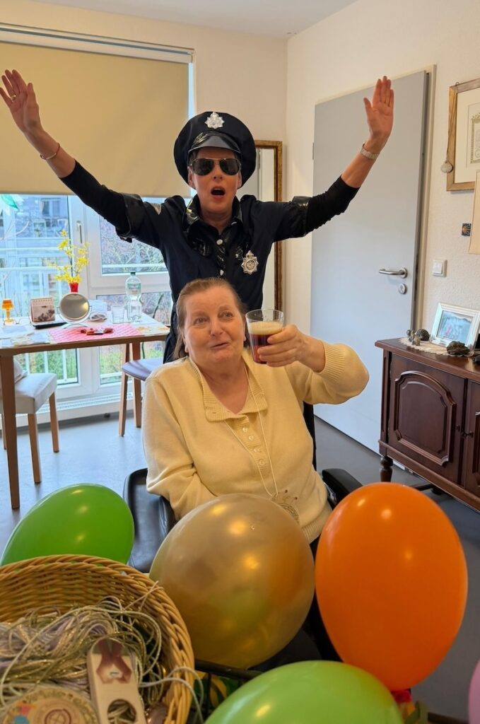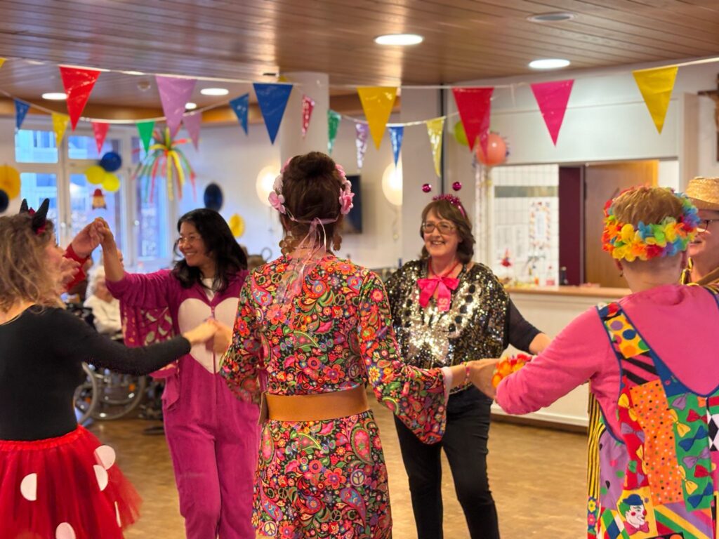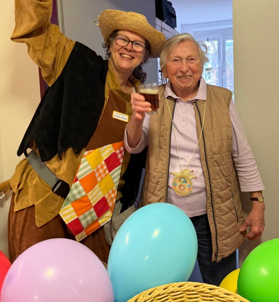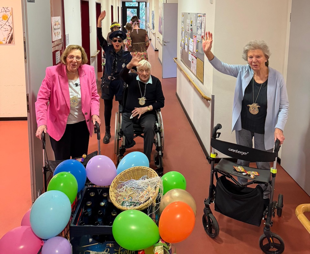 Altweiber-Umzug im Edmund-Hilvert-Haus – Helau! Was für ein jecker Tag bei uns im Edmund-Hilvert-Haus! Beim Altweiber-Umzug waren die Weiber los – und wie! Ob Leopard, Hippie, Polizistin oder Blumenmädchen – bunt, fröhlich und bestens gelaunt zogen wir mit Musik, Bier, Kamelle und Orden durch unsere Wohnetagen und machten das ganze Haus unsicher. ️ Ein ganz besonderes Highlight: Auch unsere bettlägerigen Bewohnerinnen und Bewohner konnten Karneval hautnah miterleben. Die Freude in den Gesichtern war einfach unbezahlbar – Lachen, Mitsingen und strahlende Augen überall. ️ Es war ein Riesenspaß für alle Beteiligten und hat einmal mehr gezeigt: Karneval verbindet und bringt Lebensfreude in jedes Zimmer! Helau!